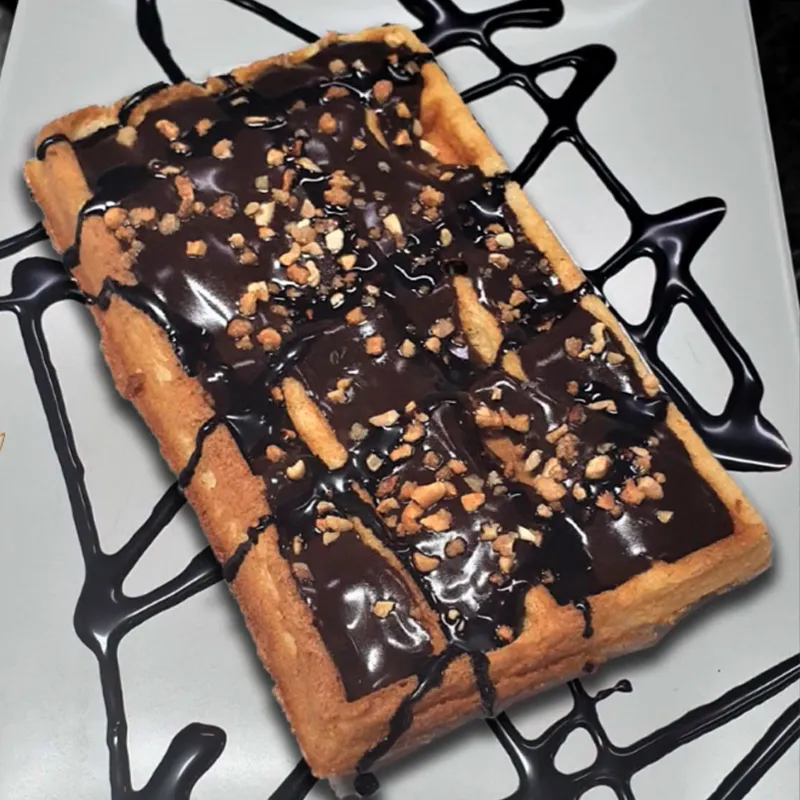 Chocolate a la taza, nata, bolitas crujientes de chocolate y sirope de chocolate